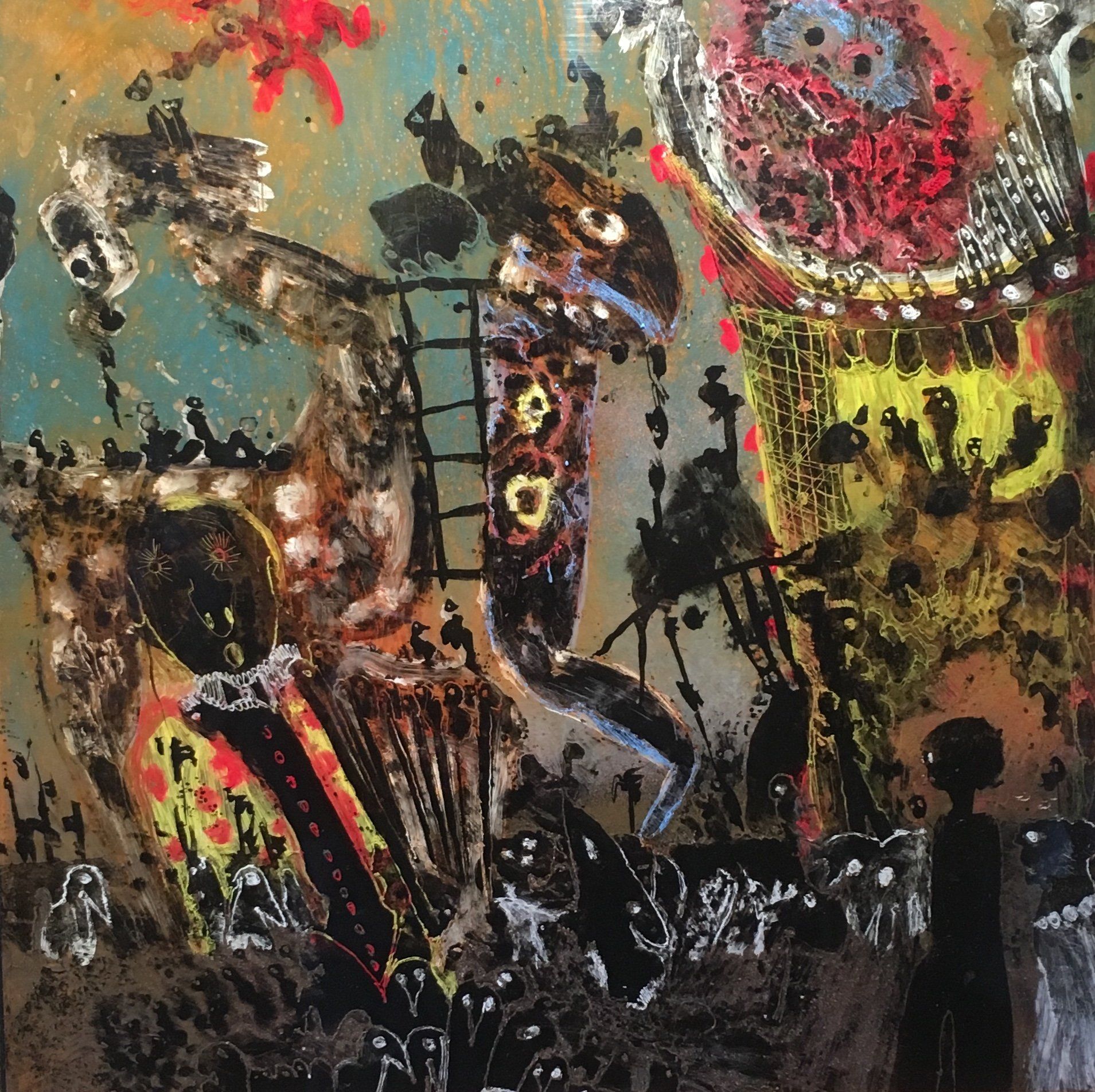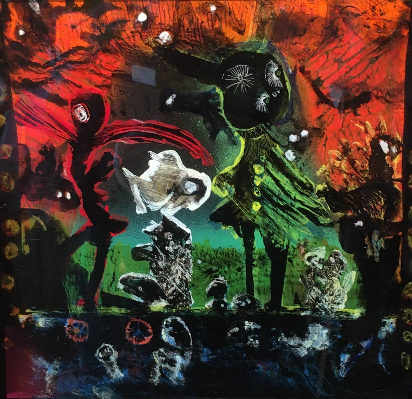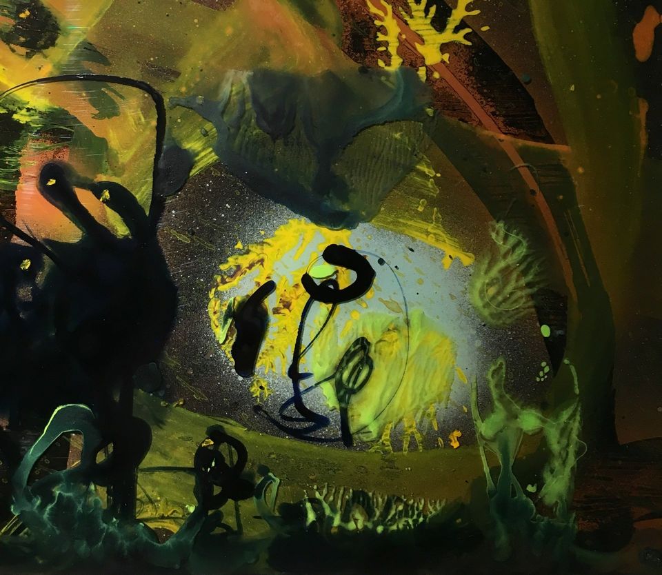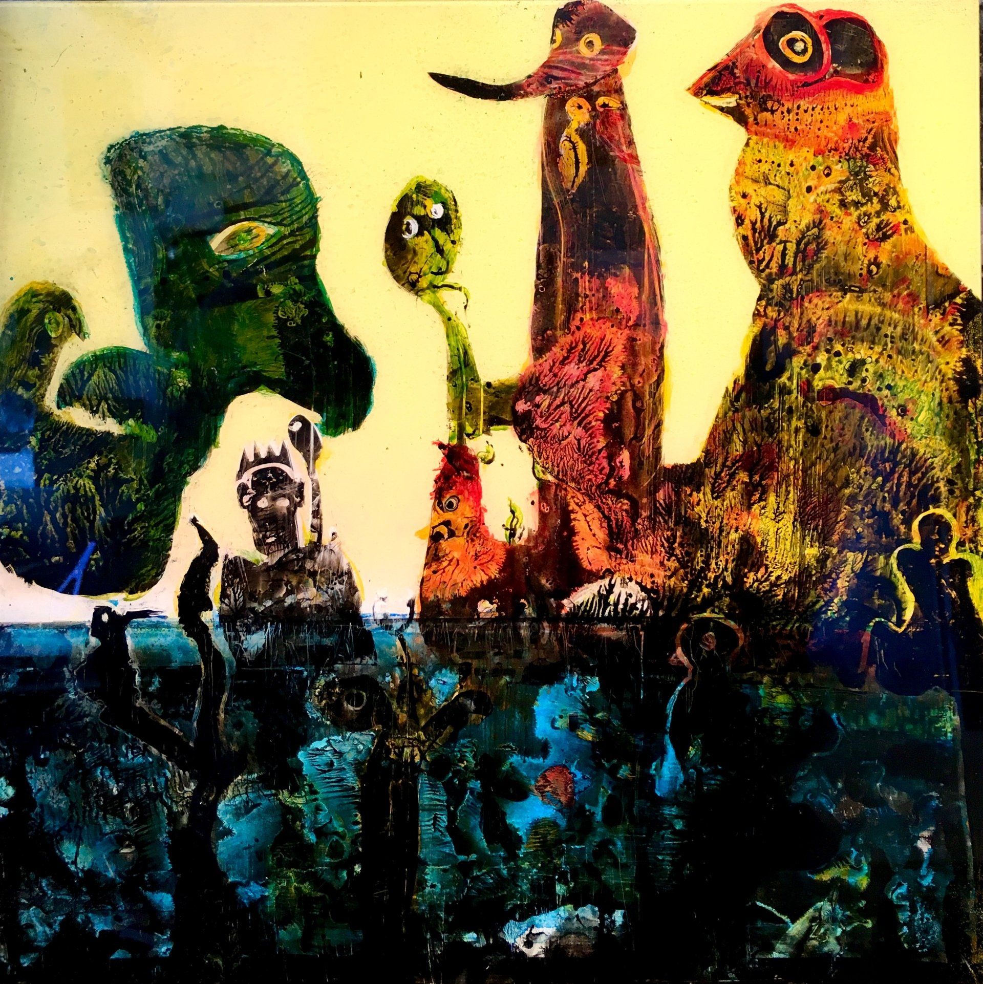 Abb.: Raimund Vögtle: o.T., reverse acrylpetpainting, 30x30 cm 2019